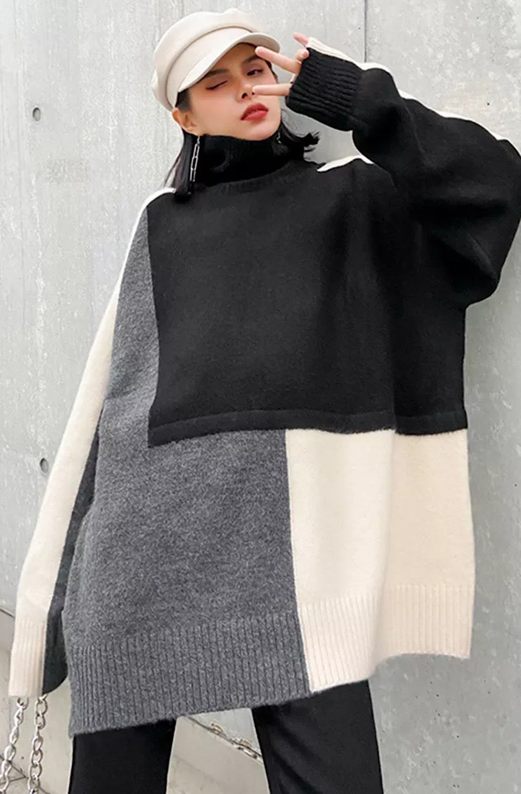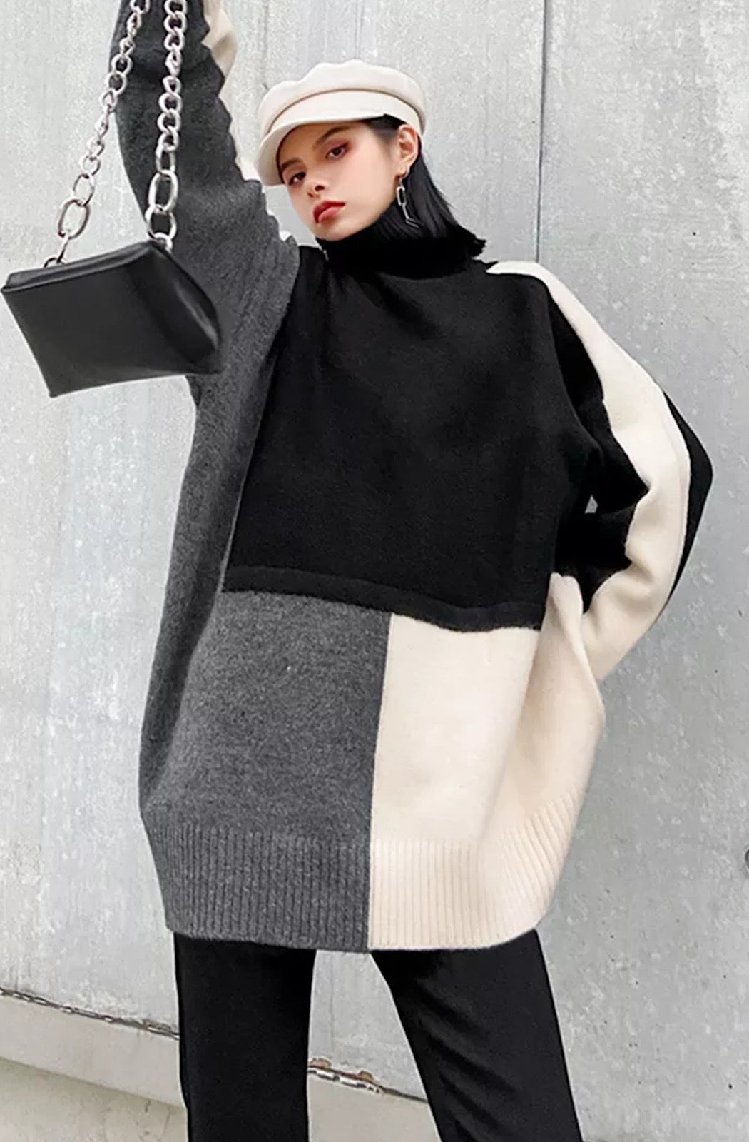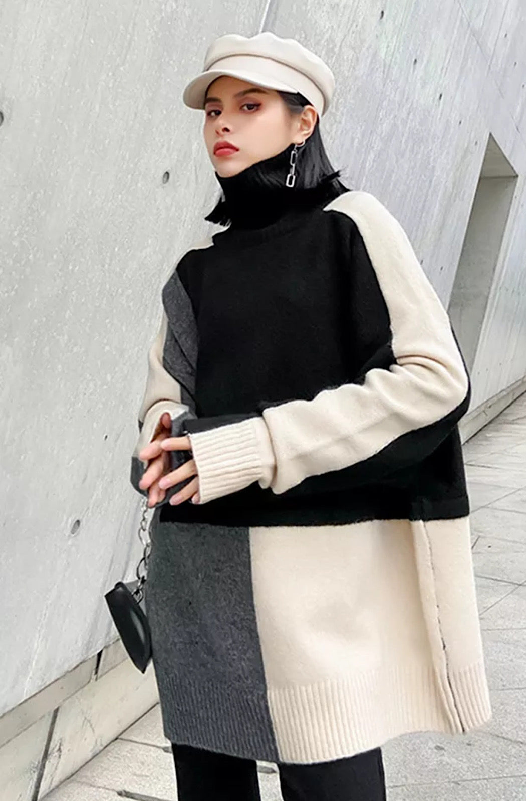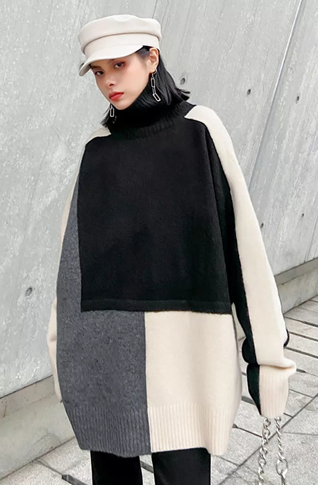 Block stitched High neck sweater
