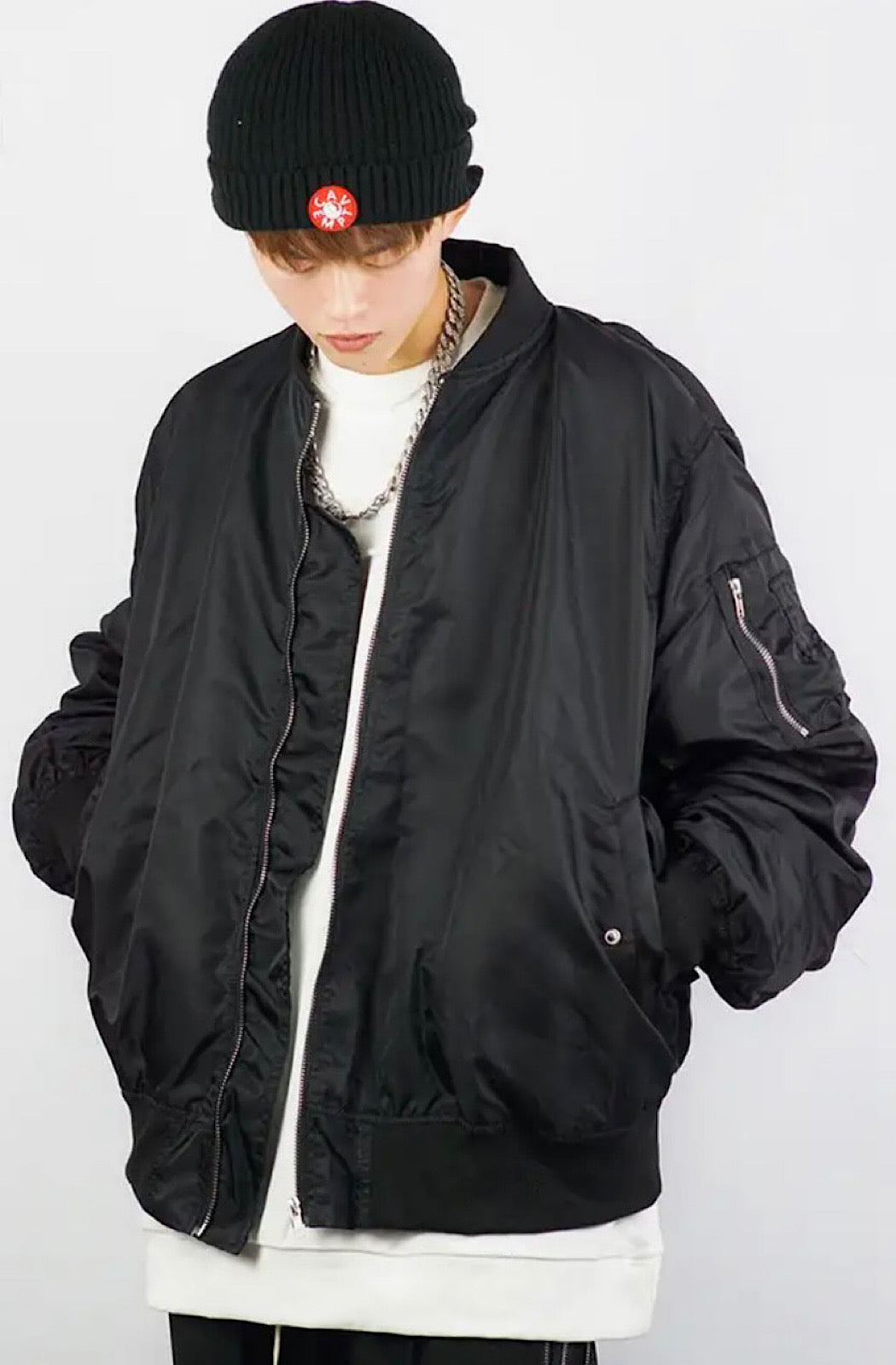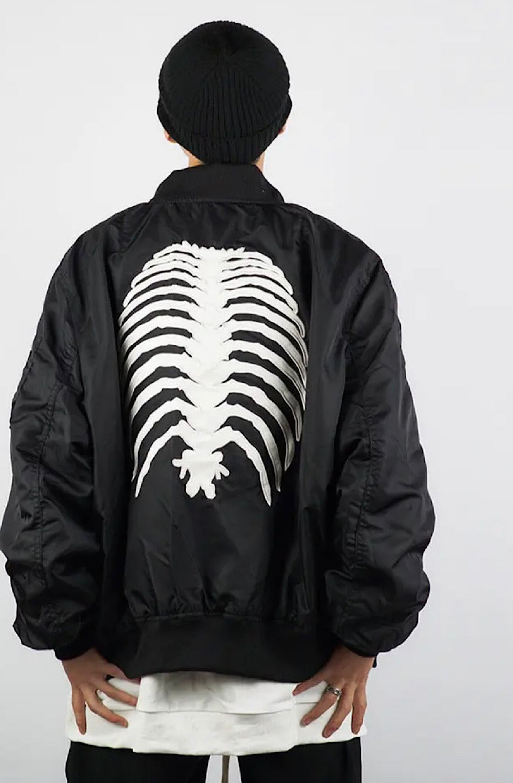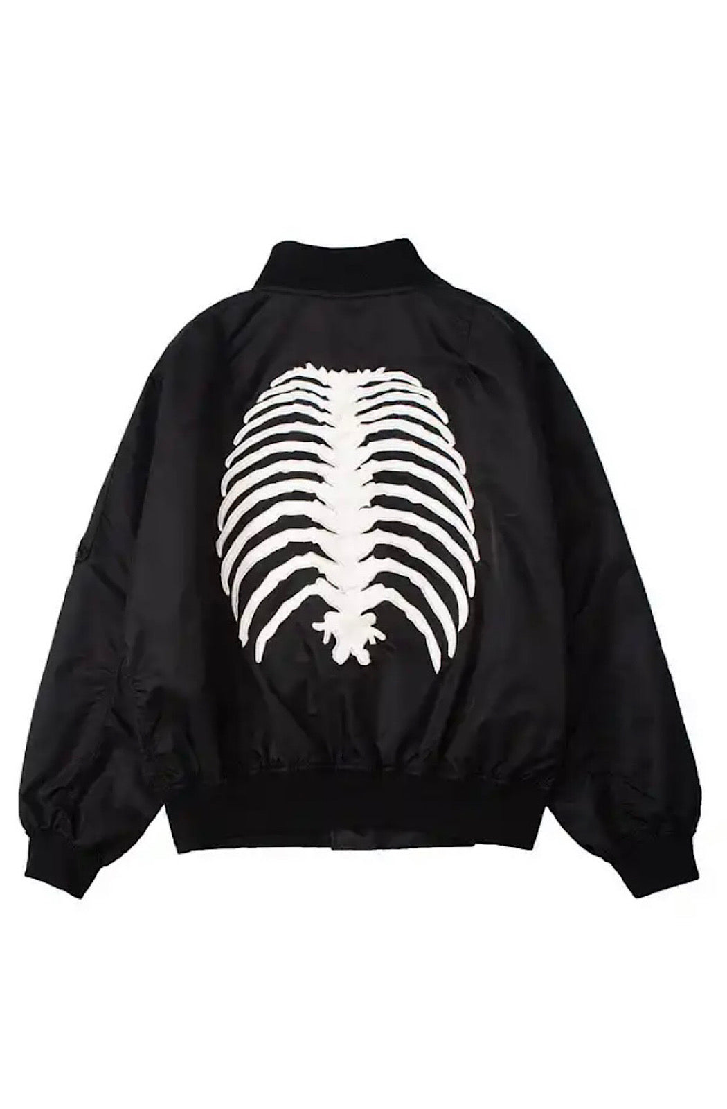 Stay warm in style with this Bones Bomber Jacket. It features a silver zip closure and skelton stitching at the back, making it both fashionable and functional.