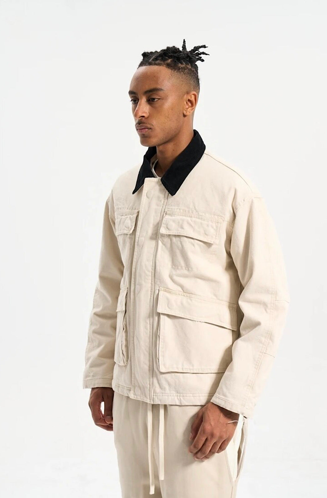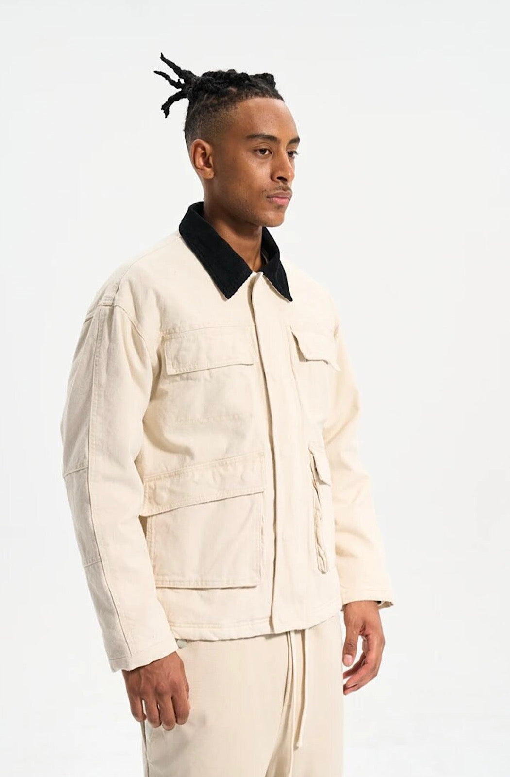 Present a polished and confident image with our Contrast Collar. This stylish piece features a button closure and a sleek black corduroy collar. With convenient double body pockets in the front, there is ample space to keep your essentials close while maintaining a fashionable look. Crafted with a comfortable cotton body and a durable corduroy collar, this collar is the perfect addition to your wardrobe.