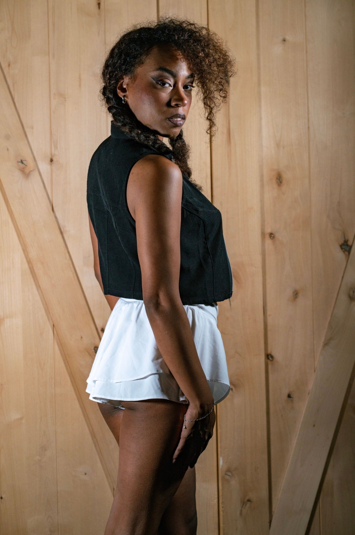 This Dual Zipper top features a double-sided silver zipper and is crafted from soft black cotton, making it perfect for spring and summer. Its versatile streetwear design allows you to dress it up or down with ease, combining comfort and style for everyday wear.