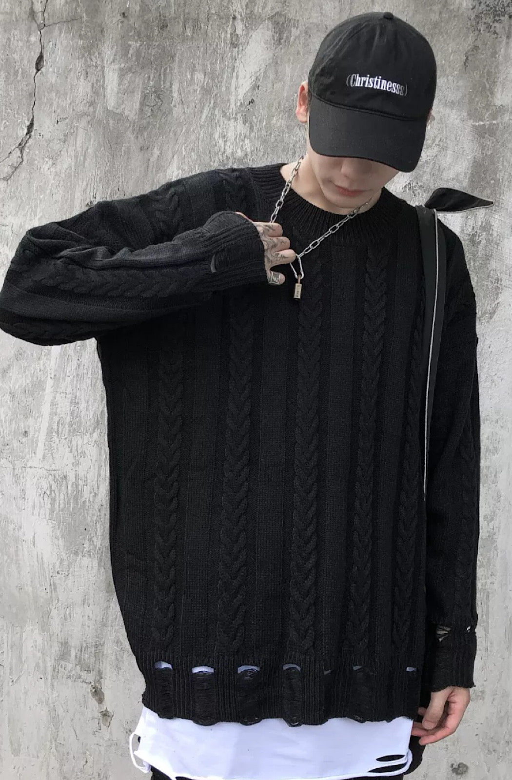 A distressed pullover