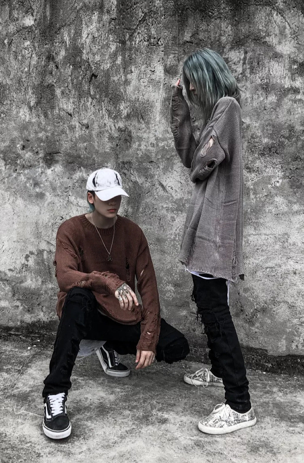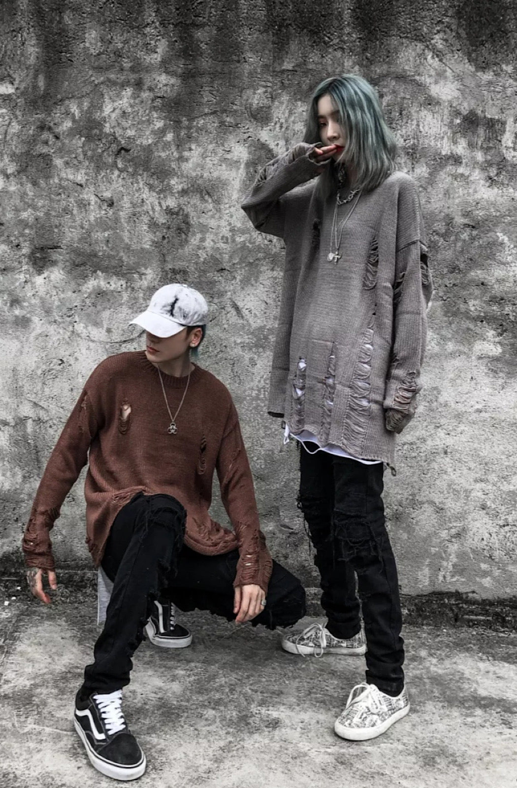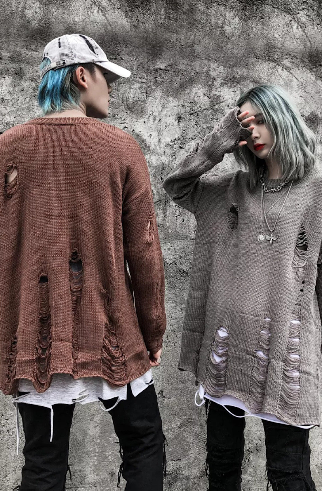 Distressed Sweater finished in black, brown and grey