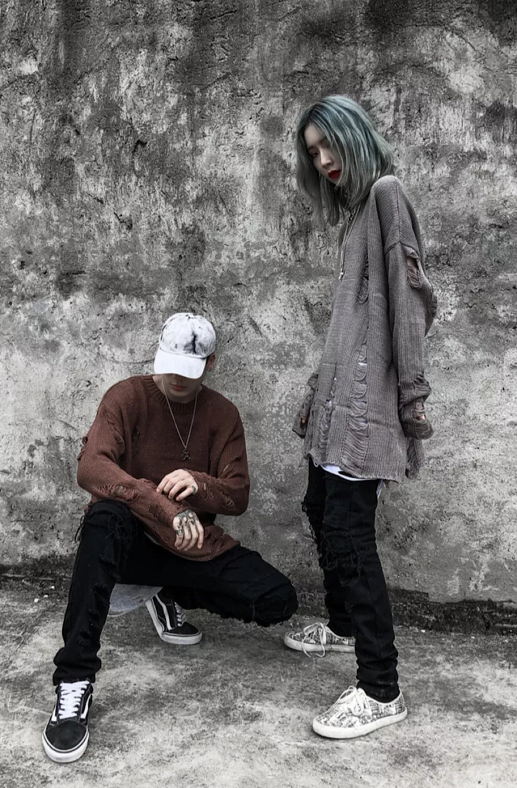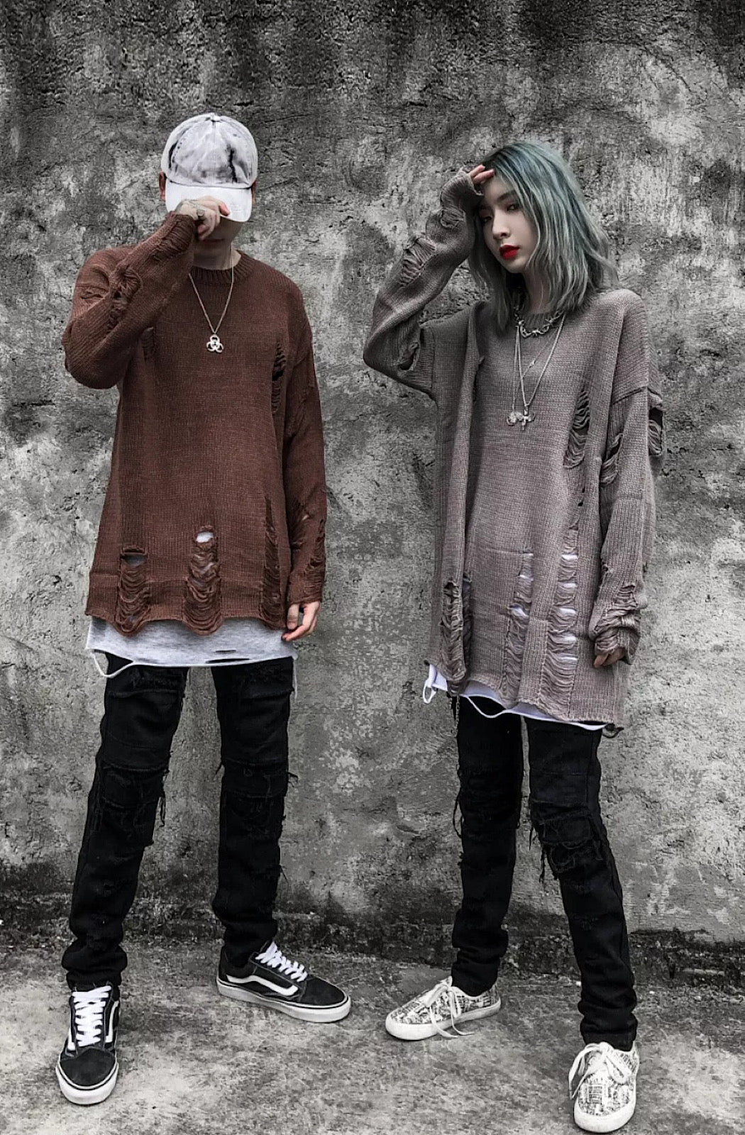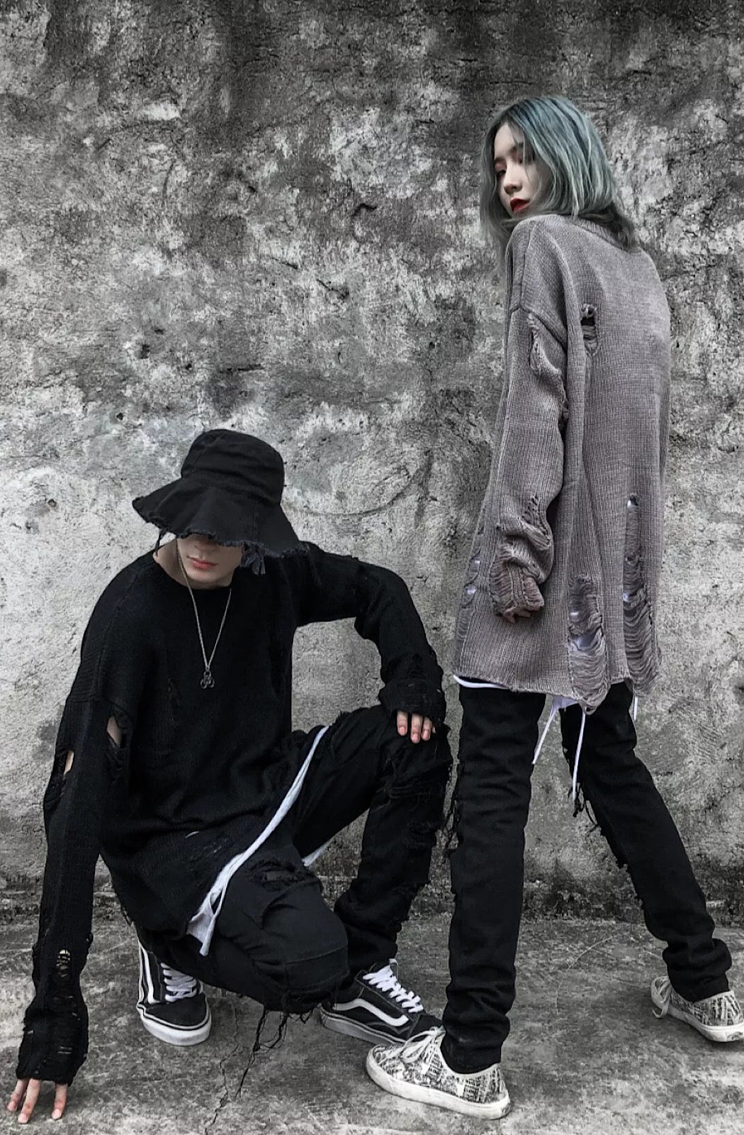 Distressed Sweater finished in black, brown and grey