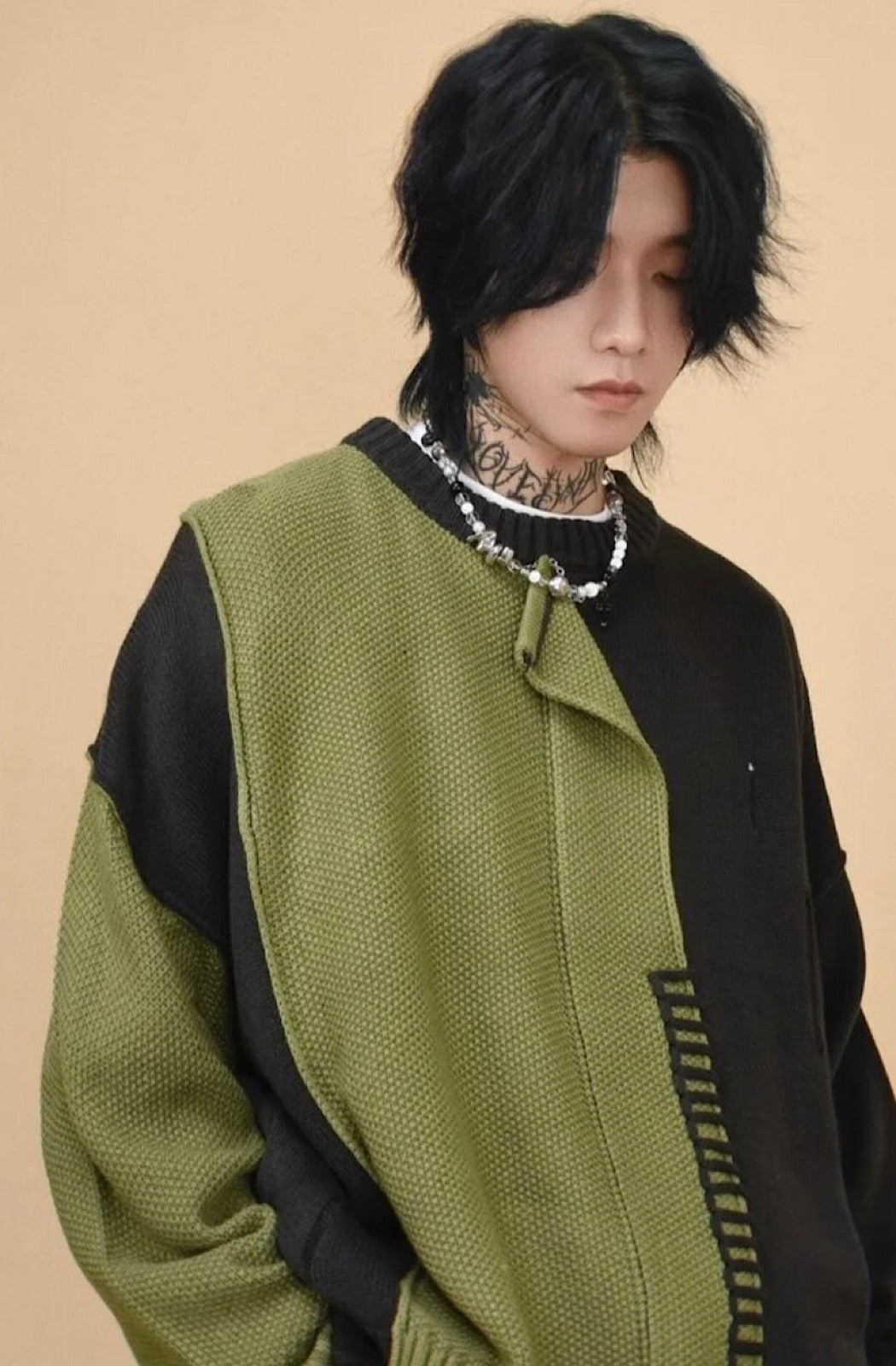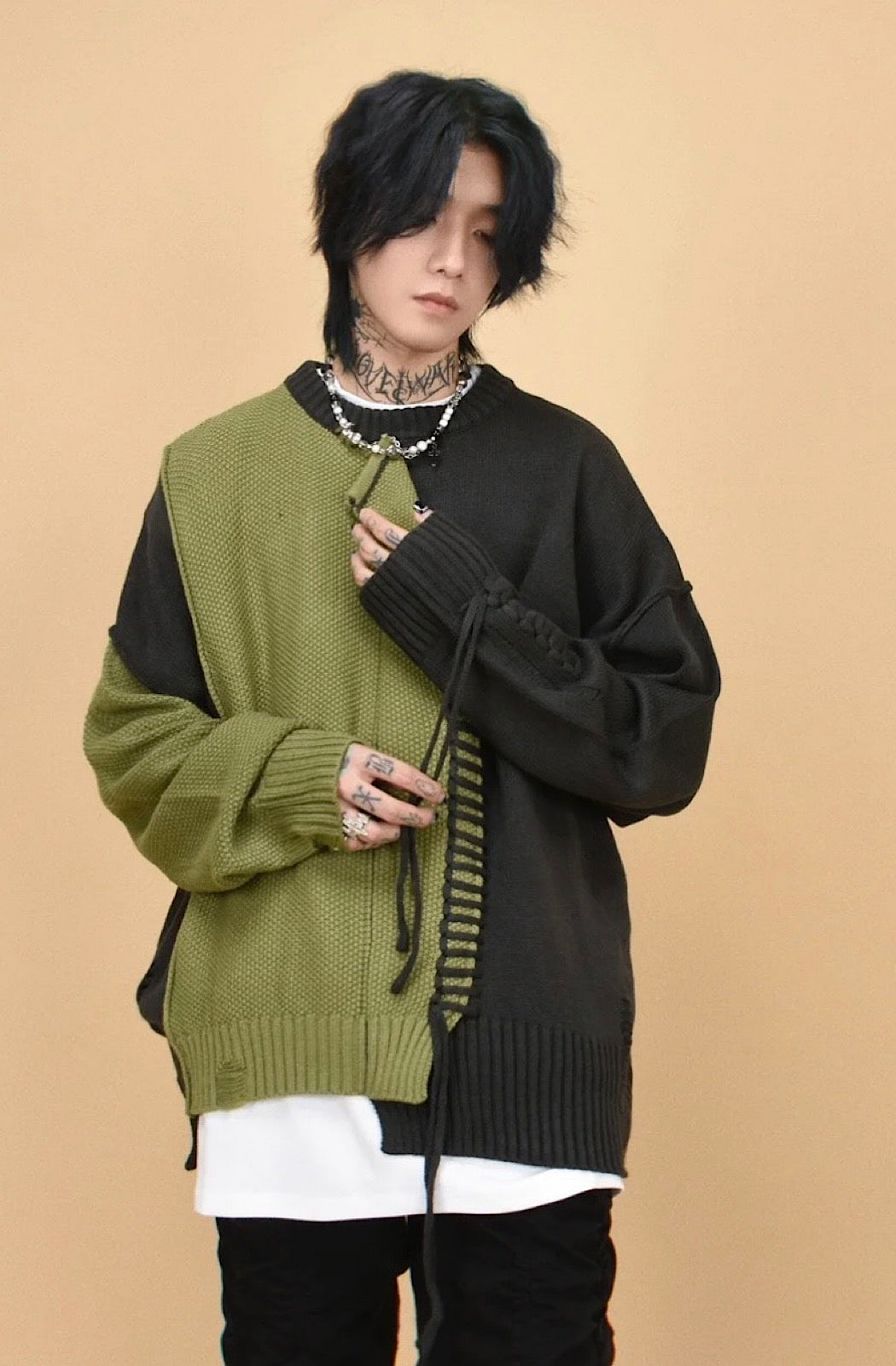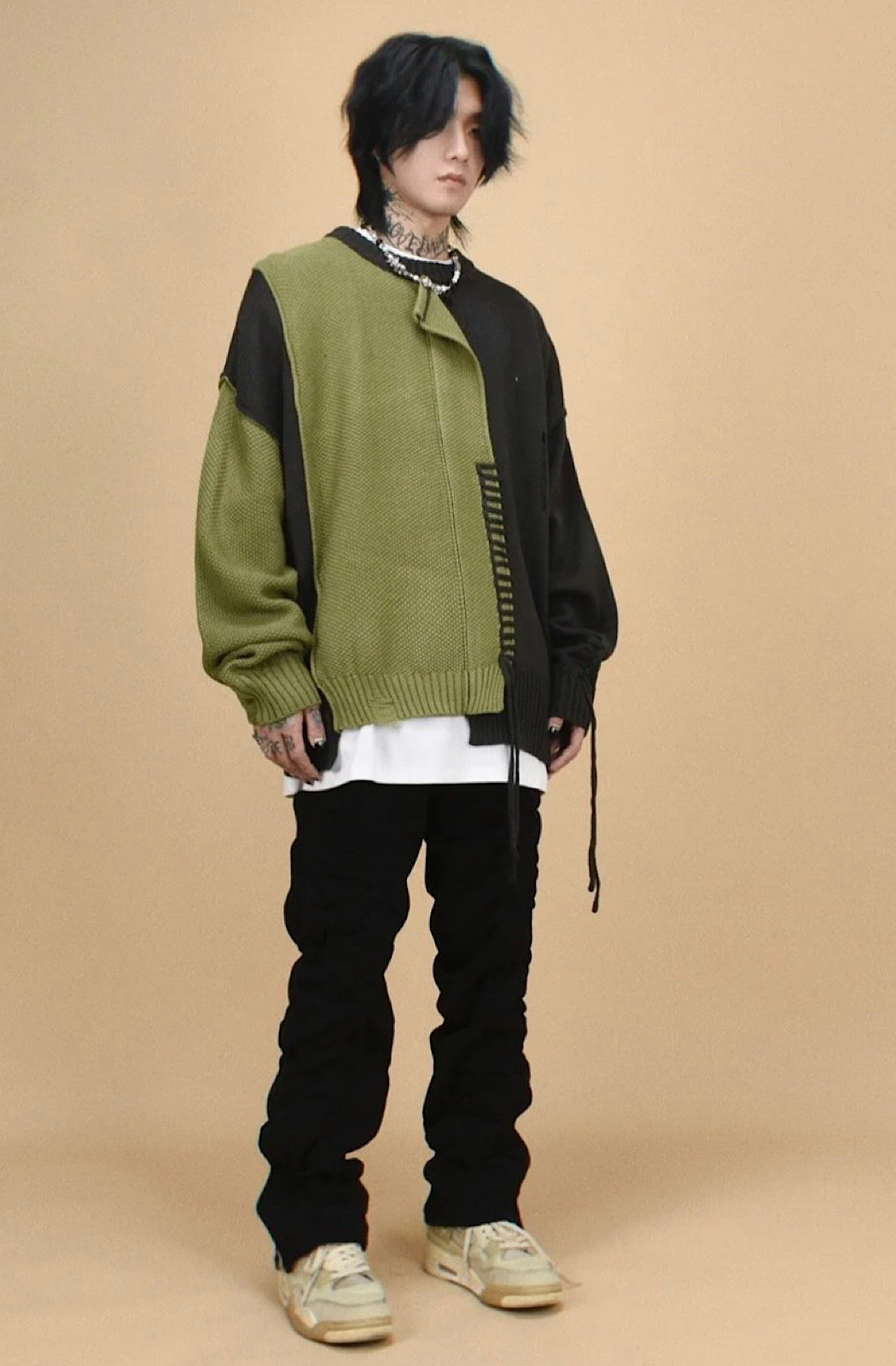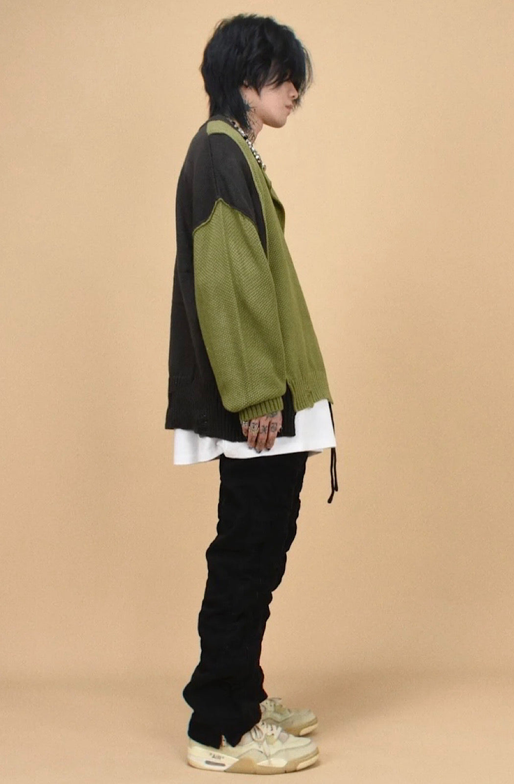 The contrasting blend of green and black, combined with a distressed design, adds a unique and special touch to this unisex garment. Embrace the edgy style with our premium quality two tone material.